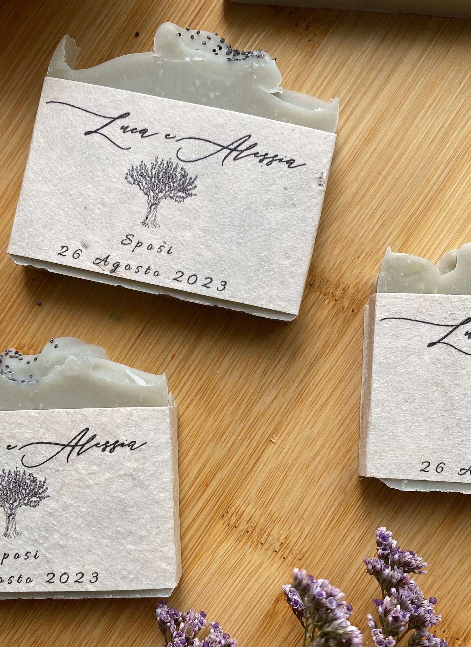 Crafted with care, each soap can be personalized with your event's name and date. Our eco-conscious approach means that these exquisite soaps not only pamper your guests but also Mother Earth.